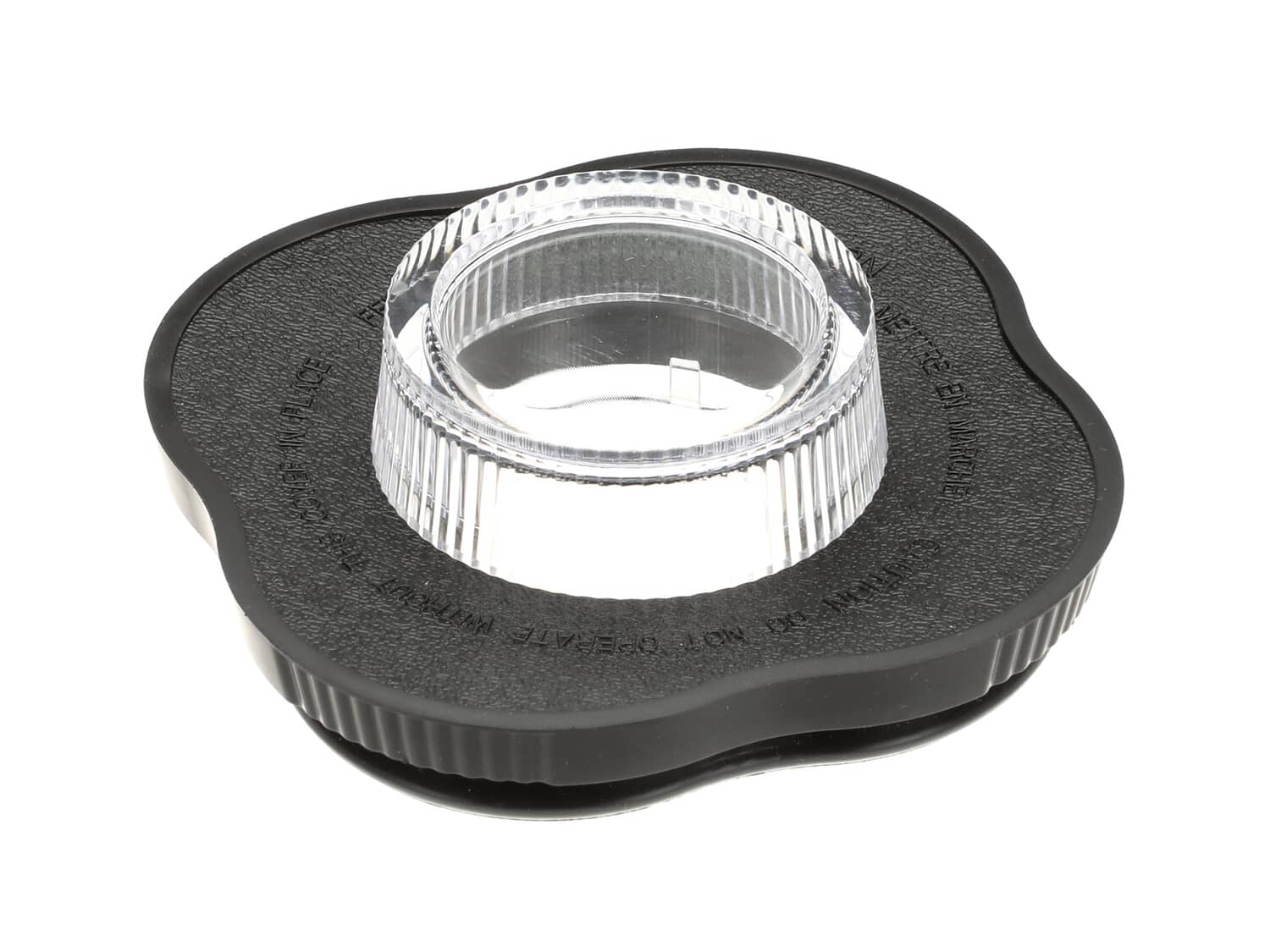 This is an original Waring replacement part manufactured for use with blenders. This two piece lid includes the round clear plastic center lid which is removable, and the black main lid. The led assembly fits the clover shaped glass blending jars, that are used with several models. This two piece lid is sold individually.