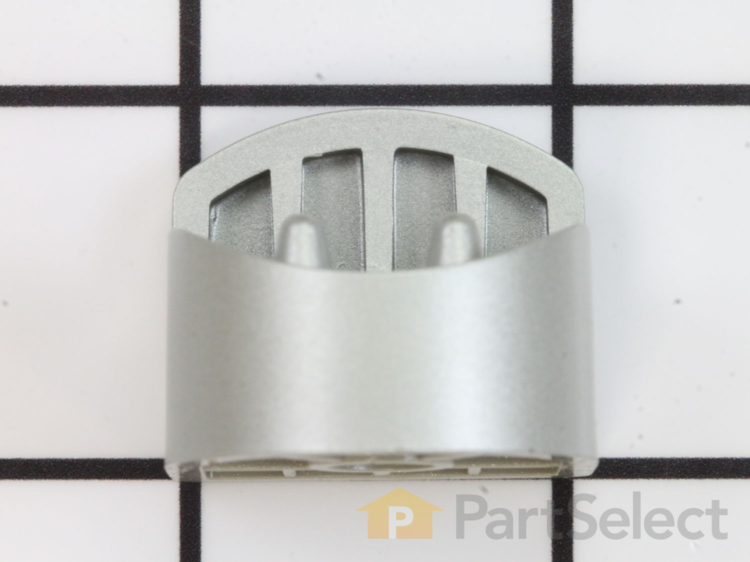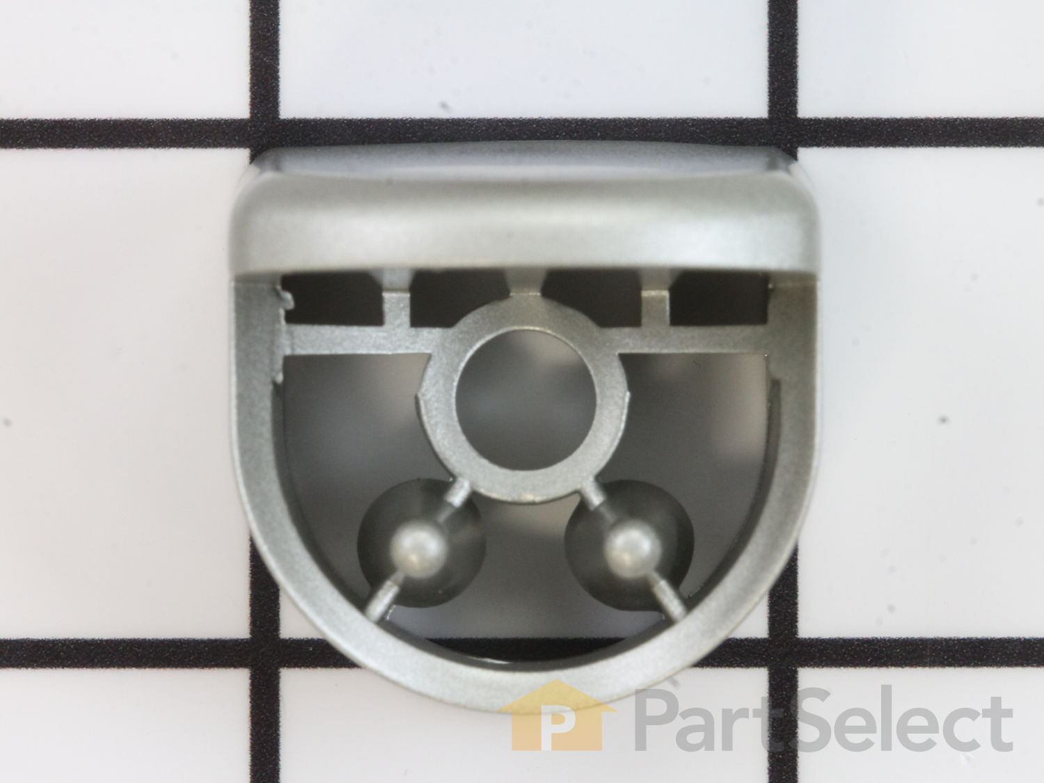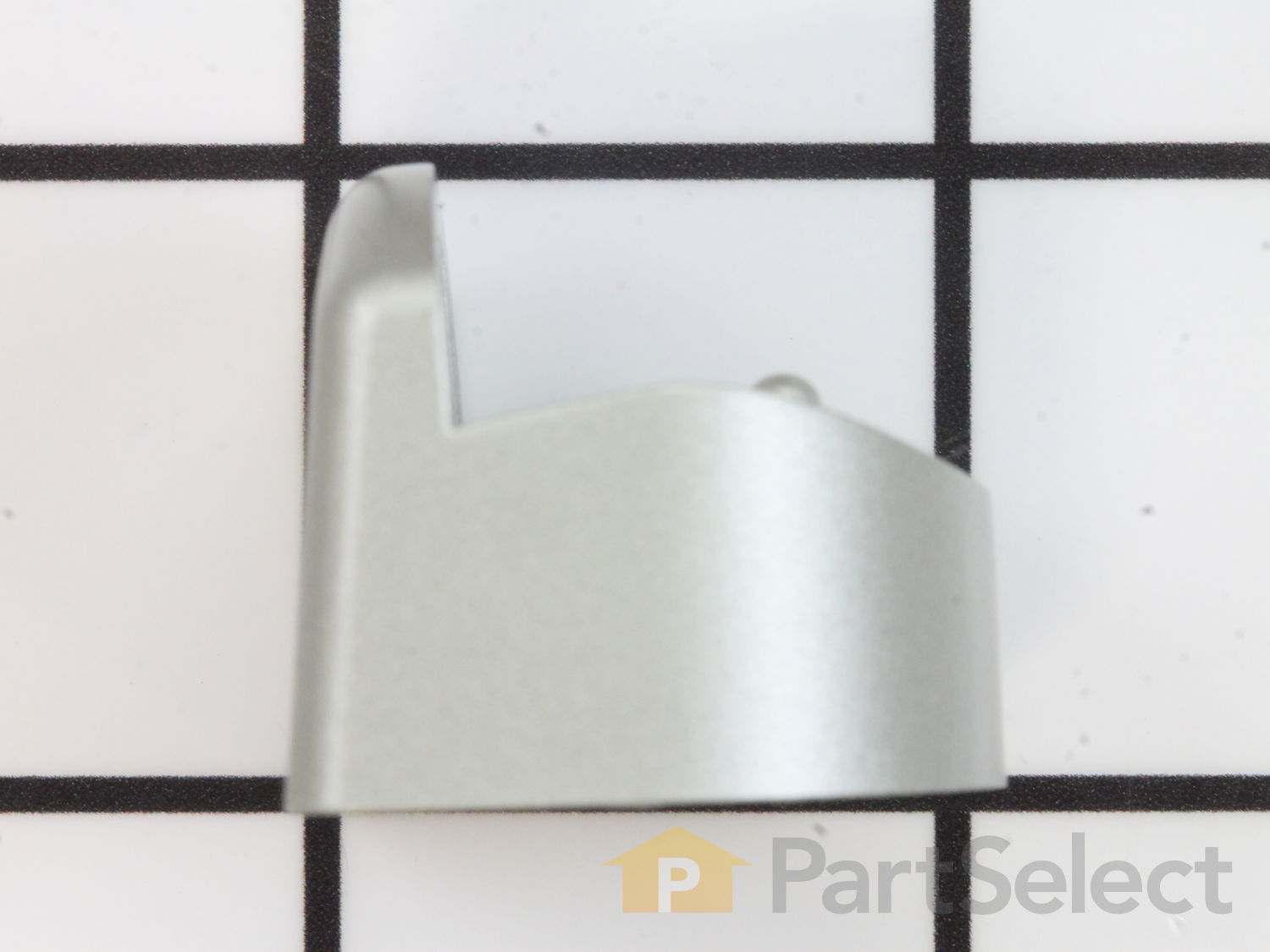 This dishwasher door handle end cap is a genuine OEM replacement designed for Bosch dishwashers. Finished in silver, it attaches to the side of the door handle, securing it to the dishwasher door for a clean and stable fit. Compatible with select Bosch, Thermador, and Gaggenau models, this part installs easily using basic tools such as a Phillips screwdriver and a 1/4" nut driver.