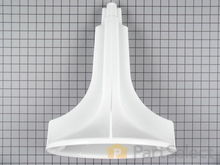 In top loading washing machines, the agitator is responsible for moving the clothes through the water and detergent and is driven by the output shaft of the transmission. The output shaft is normally splined, and the center of the plastic agitator will have a matching spline to ensure a tight fit. Depending on the brand, the agitator may be a single piece unit or a two-piece dual action agitator.